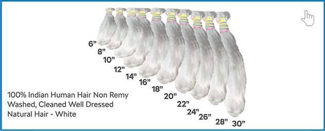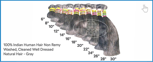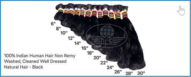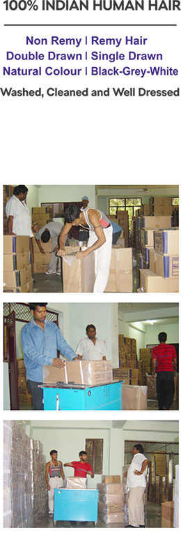 We are one of the biggest exporters of 100% Indian Human Hair, producing a staggering 60,000 kgs. (60 tones) of human hair per month. We supply 100% Human Hair, including Double Drawn, Single Drawn, Remy and Non-Remy washed and cleaned, well dressed and combed natural Hair. The sizes vary from 6” to 30”.